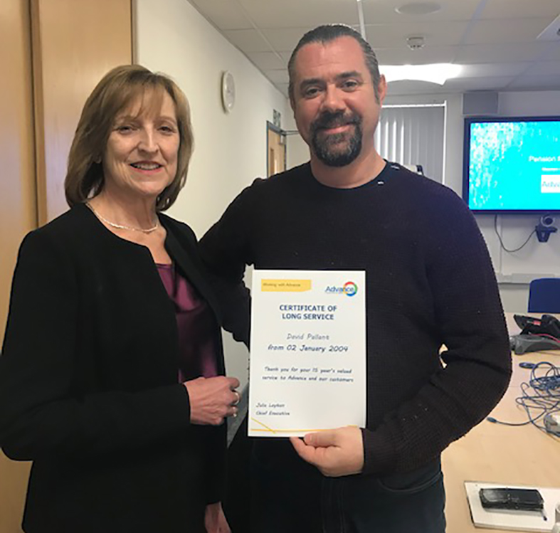 David Pallant (pictured with Julie Layton) is a support worker in Kent. He has worked for Advance for 15 years. Service Manager, Isobel Walker said: "David has a really good relationship with all the tenants at Priory Road and Empress Road. He is very hands on and likes to organise theatre trips and days out to the sea side in the summer. All our tenants and their families think highly of David and feel he is approachable and very helpful.